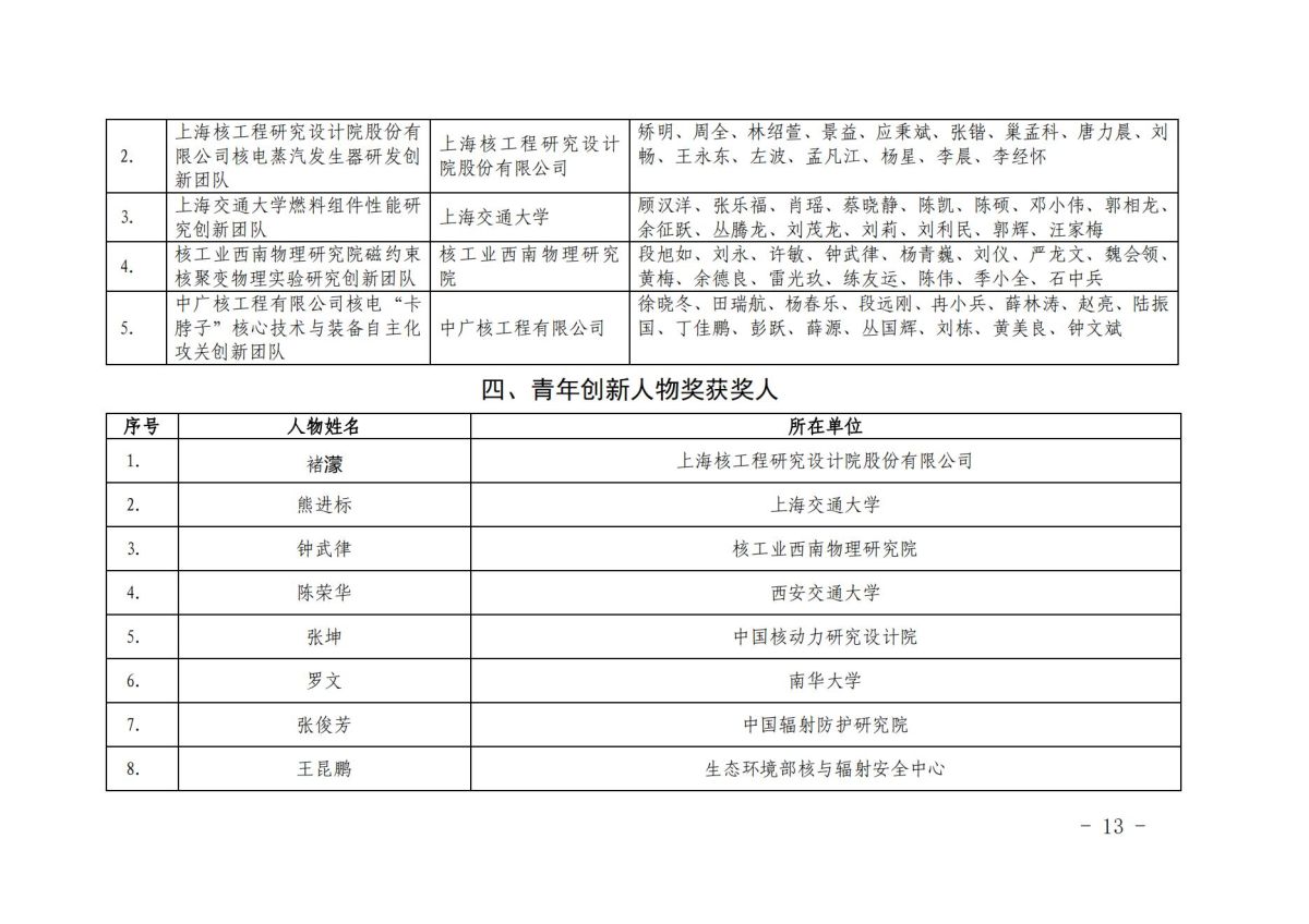 授予上海核工程研究設(shè)計(jì)院股份有限公司褚蒙等8名同志青年創(chuàng)新人物獎(jiǎng)。