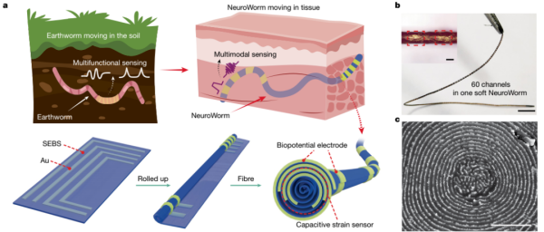 近日,中國科學(xué)院深圳先進(jìn)技術(shù)研究院等,成功研發(fā)出如頭發(fā)絲般纖細(xì)、柔軟可拉伸、可自由驅(qū)動(dòng)的神經(jīng)纖維電極——NeuroWorm(神經(jīng)蠕蟲),首次提出了腦機(jī)接口“動(dòng)態(tài)電極”的新范式,打破了植入式電極的“靜態(tài)”傳統(tǒng),為腦機(jī)接口電極的研究與應(yīng)用開辟了新方向。