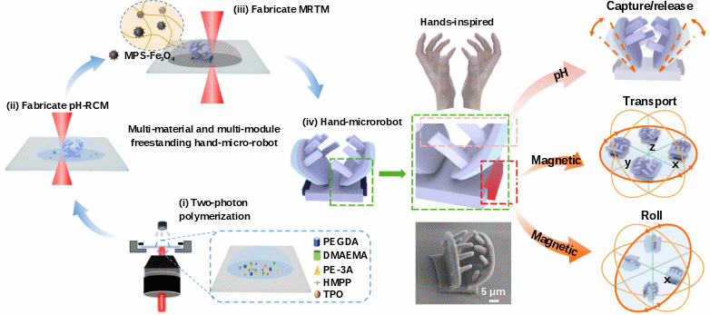 飛秒激光直寫(xiě)多材料多模塊手型微納機(jī)器人