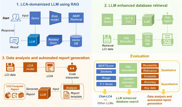 Chat-LCA系統(tǒng)實現(xiàn)了LLM在“知識獲取—數(shù)據(jù)檢索—報告生成”全鏈條的深度融合,顯著提升了碳核算的智能化水平。該研究的原創(chuàng)性體現(xiàn)在首次將檢索增強(qiáng)生成(RAG)、Text2SQL、思維鏈(CoT)與代碼鏈(CoC)等前沿AI技術(shù)系統(tǒng)整合于LCA全流程,構(gòu)建了支持自然語言交互的一體化碳核算智能系統(tǒng)。Chat-LCA有效打通了知識壁壘與數(shù)據(jù)孤島,實現(xiàn)了從專業(yè)問答到報告生成的全流程自動化,突破了現(xiàn)有研究中技術(shù)覆蓋片面、環(huán)節(jié)割裂的局限。