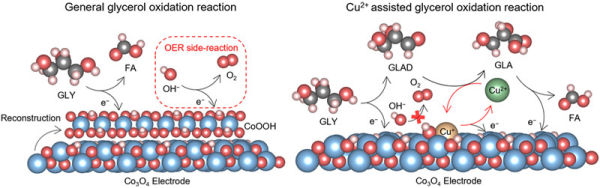 過渡金屬氧化物催化性能優(yōu)異、成本較低,成為電催化甘油氧化反應中常用的催化材料。但是,在面向氫能產業(yè)所需的工業(yè)級電流密度下進行電催化甘油氧化時,這類材料表面易發(fā)生氧化非晶化,引發(fā)析氧副反應,降低目標產物的法拉第效率。這制約了電催化甘油氧化技術在氫能產業(yè)中的規(guī)模化應用。