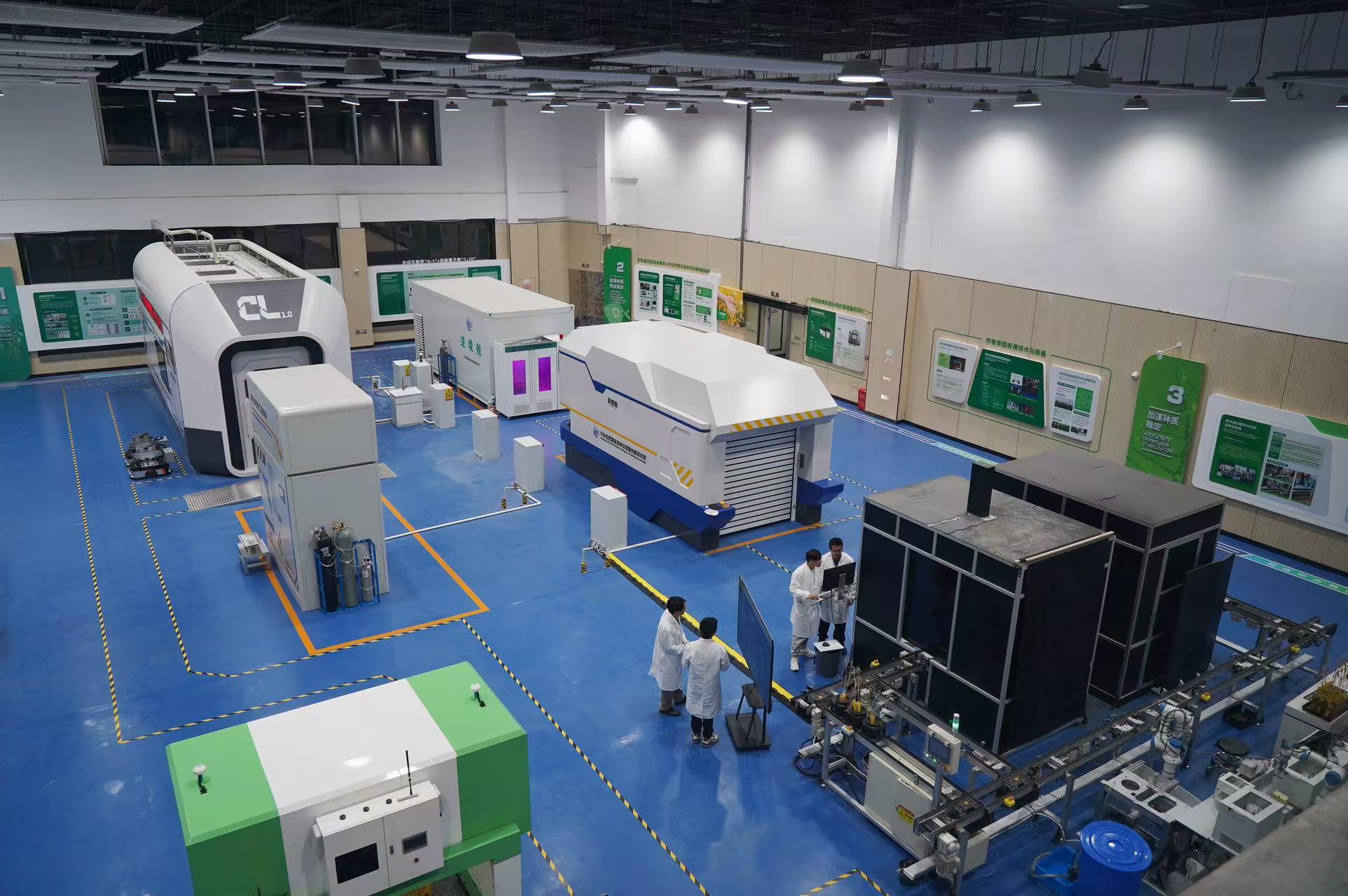 機(jī)器人育種家“小?!备采w種質(zhì)創(chuàng)制-種質(zhì)鑒定-種質(zhì)穩(wěn)定三個(gè)育種關(guān)鍵環(huán)節(jié),是“海霸設(shè)施”大科學(xué)裝置關(guān)鍵技術(shù)試驗(yàn)示范和概念驗(yàn)證的微縮版。該系統(tǒng)通過跨學(xué)科技術(shù)集成,取得了三方面的進(jìn)展:一是利用載能離子誘變育種技術(shù)進(jìn)行AI賦能,開辟非基因編輯的高效發(fā)掘基因資源新路徑,將具有潛在育種價(jià)值基因型的挖掘與篩選效率提升一個(gè)數(shù)量級(jí);二是具備精準(zhǔn)可控的逆境鑒定能力,構(gòu)建了動(dòng)態(tài)多逆境協(xié)同表型鑒定系統(tǒng),可精準(zhǔn)模擬并控制關(guān)鍵環(huán)境參數(shù),重現(xiàn)多種極端脅迫場(chǎng)景,實(shí)現(xiàn)了對(duì)作物抗逆性狀的定量化、高通量鑒定;三是壓縮育種周期,通過集成智能環(huán)境控制與光溫周期優(yōu)化技術(shù),構(gòu)建出多作物智能加代體系,可實(shí)現(xiàn)主要農(nóng)作物一年多代連續(xù)繁育。