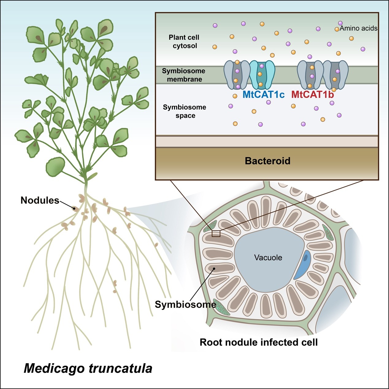 該研究揭示了氨基酸轉(zhuǎn)運蛋白在共生體膜中的關(guān)鍵作用,為維持高效共生固氮體系提供了重要分子基礎(chǔ)。