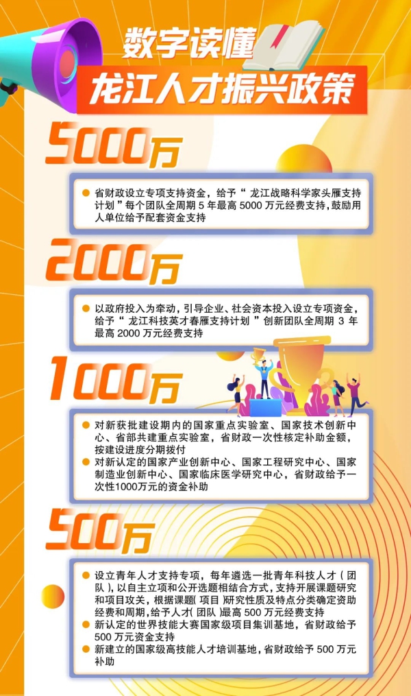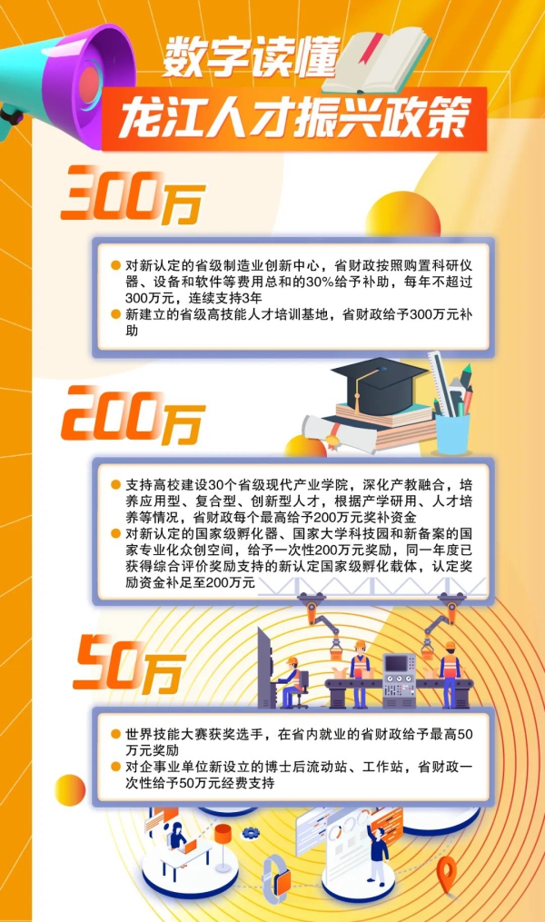 四是打造龍江愛才近悅遠來服務品牌。良好的人才發(fā)展環(huán)境,對內是凝聚力、向心力,對外是吸引力、競爭力?!缎聲r代人才振興60條》在打造暖心感人、拴心留人環(huán)境上,堅持服務再擴面、工作再聚焦、保障再升級。服務擴面就是將服務高層次人才的范圍由原來的國家級人才擴展為A、B、C、D、E五類,將梯隊儲備以上層次的人才全部納入服務支持范圍,均可享受相應政策和服務,同時大幅度提高引才資助、補助和安家補貼標準。工作聚焦就是把引進留住黑龍江籍高校畢業(yè)生和省內高校畢業(yè)生作為重點,持續(xù)深化省校合作,深入推進“黑龍江人才周”“市委書記進校園”等系列活動,吸引留住更多優(yōu)秀高校畢業(yè)生,千方百計提高省內高校畢業(yè)生留省率。保障升級就是全面提高人才服務質量,盡力做精、做細、做到位,用心用情關愛人才,聚焦人才普遍關切的住房安居、子女入學、配偶安置、看病就醫(yī)、交通出行等,提出切實可行的“一攬子”政策措施,同時加快建設國際人才社區(qū)、國際學校、人才公園、人才大道等,全面打造有效激發(fā)人才創(chuàng)造活力的良好環(huán)境,讓各方面人才在龍江安心安身安業(yè)。