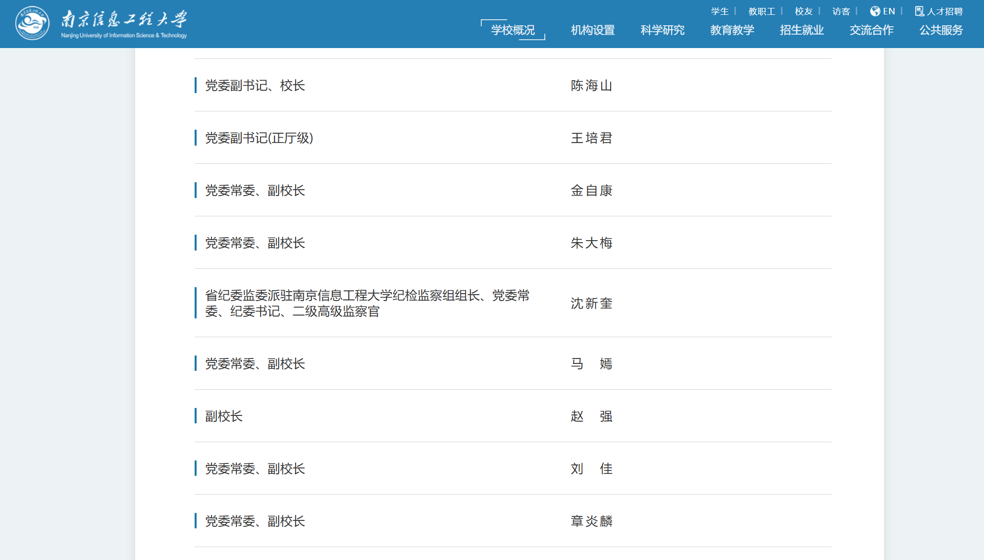 據(jù)南京信息工程大學官網(wǎng)“學校領導”一欄顯示,章炎麟已擔任南京信息工程大學黨委常委、副校長。