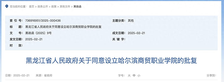 批復(fù)內(nèi)容顯示,學(xué)院舉辦者是黑龍江龍李教育科技有限公司,主管部門是哈爾濱新區(qū)管委會,教育教學(xué)業(yè)務(wù)由省教育廳統(tǒng)管。學(xué)院黨建工作按照相關(guān)規(guī)定辦理。