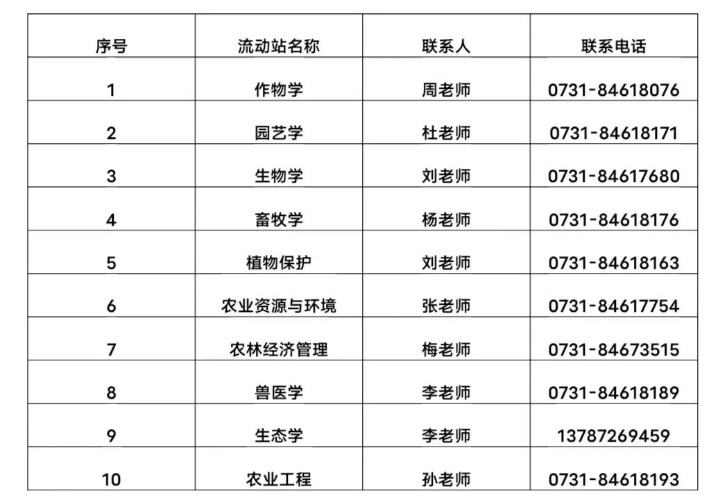 ?。ㄈ└髁鲃?dòng)站、合作導(dǎo)師聯(lián)系方式及各類型博士后的進(jìn)出站條件見(jiàn)湖南農(nóng)業(yè)大學(xué)博士后網(wǎng)站:http://bsh.hunau.edu.cn