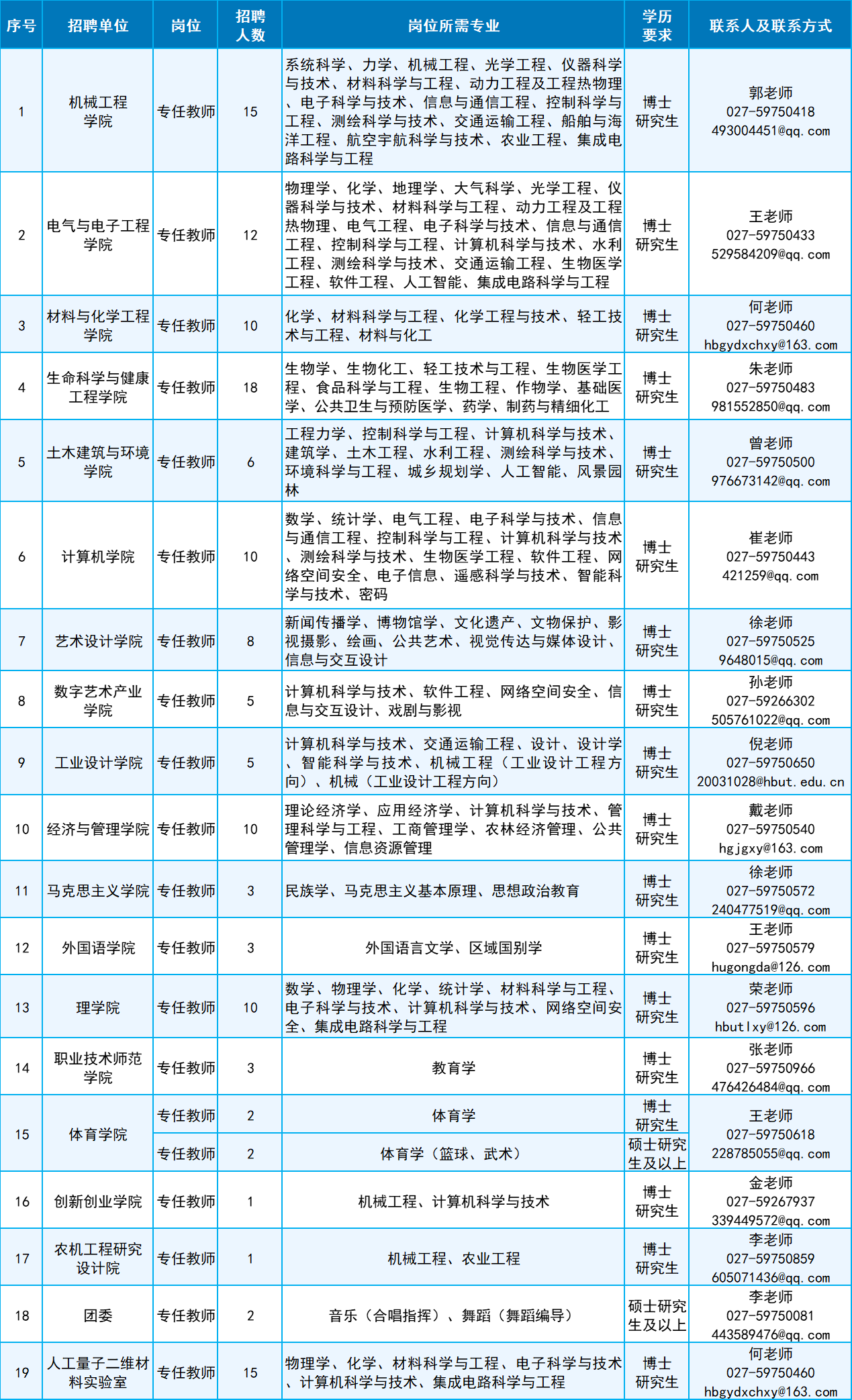 2.聯(lián)系方式:027-59750178(人事處師資辦)、027-59750186(人事處高層次人才辦公室)