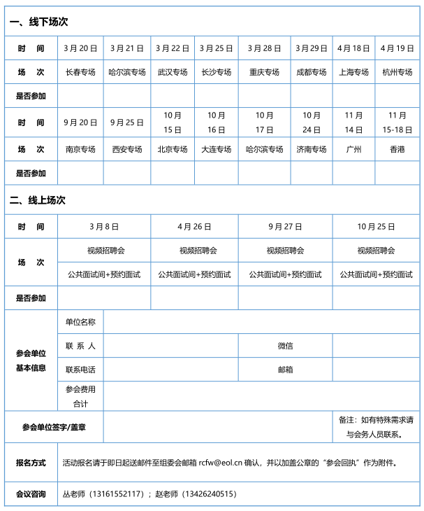 至少20場(chǎng)招聘會(huì),其中包括分布于全國(guó)各地的16場(chǎng)線下和4場(chǎng)線上招聘會(huì),具體安排請(qǐng)?jiān)斠?jiàn)參會(huì)回執(zhí)。