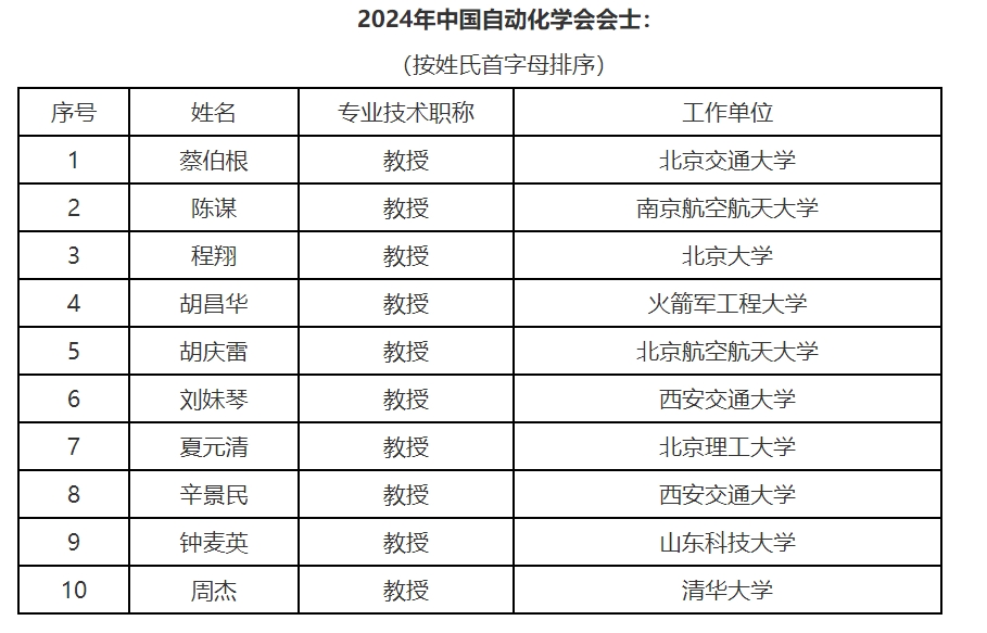 2024年中國(guó)自動(dòng)化學(xué)會(huì)會(huì)士評(píng)審結(jié)果公示