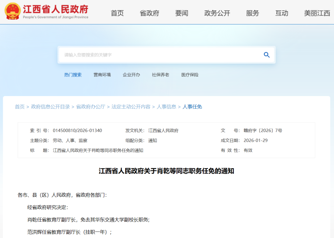 近日,江西省人民政府發(fā)布最新任免通知。經(jīng)省政府研究決定:肖乾任省教育廳副廳長,免去其華東交通大學(xué)副校長職務(wù);范洪輝任省教育廳副廳長(掛職一年)。