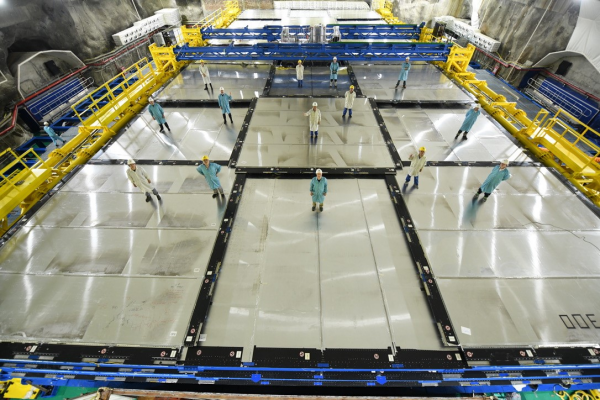 8月26日,江門中微子實驗(JUNO)成功完成2萬噸液體閃爍體灌注,正式運行取數(shù)。經過十余年的準備和建設,JUNO成為國際上首個運行的超大規(guī)模和超高精度中微子專用大科學裝置。JUNO在試運行期間首批獲取的數(shù)據顯示,其探測器關鍵性能指標全面達到或超越設計預期,這使JUNO能夠著手解決粒子物理學領域未來十年內的一個重大問題:中微子質量排序——即第三種中微子(ν?)是否比第二種(ν?)更重。