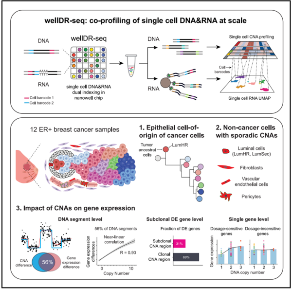 近日,中國科學(xué)院分子細(xì)胞科學(xué)卓越創(chuàng)新中心等,開發(fā)出高通量單細(xì)胞基因組和轉(zhuǎn)錄組聯(lián)合測序方法wellDR-seq,對(duì)12例乳腺癌中超過3萬個(gè)單細(xì)胞進(jìn)行雙組學(xué)解析。