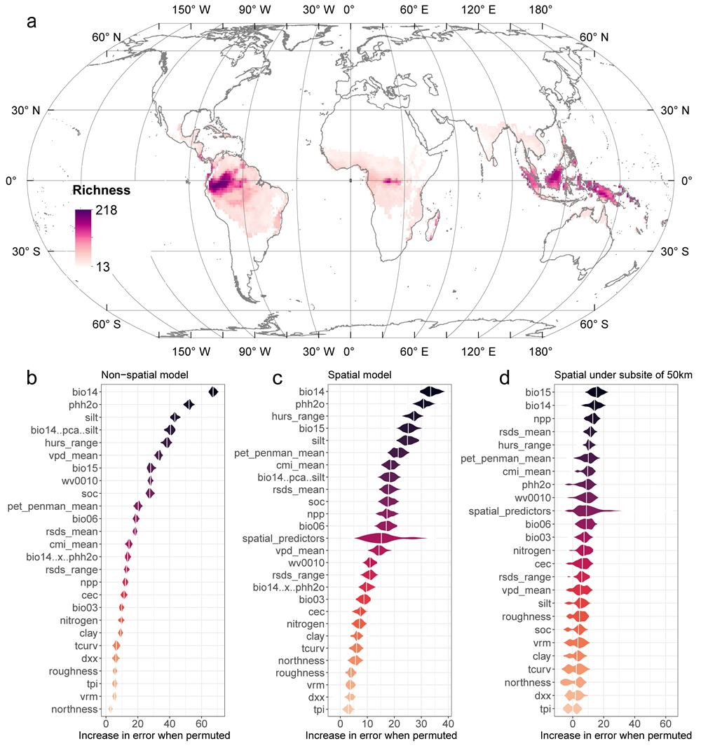 基于非空間自相關(guān)和空間自相關(guān)的隨機森林模型預(yù)測熱帶地區(qū)的樹種豐富度以及環(huán)境變量的重要性排序?