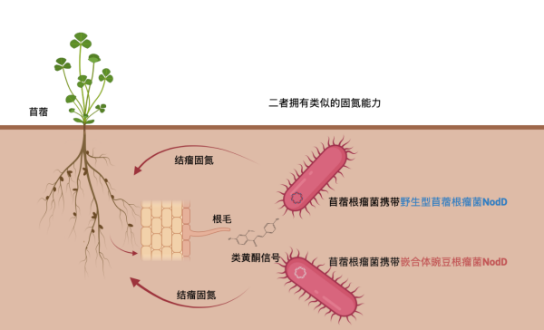 嵌合體NodD能夠互補苜蓿根瘤菌NodD突變體,恢復(fù)其在苜蓿上的固氮結(jié)瘤能力
