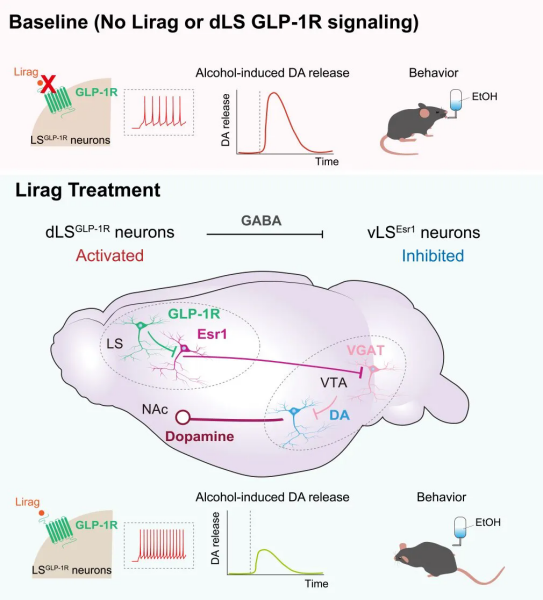 GLP-1信號(hào)通過外側(cè)隔核抑制性微環(huán)路限制酒精獎(jiǎng)賞和飲酒行為