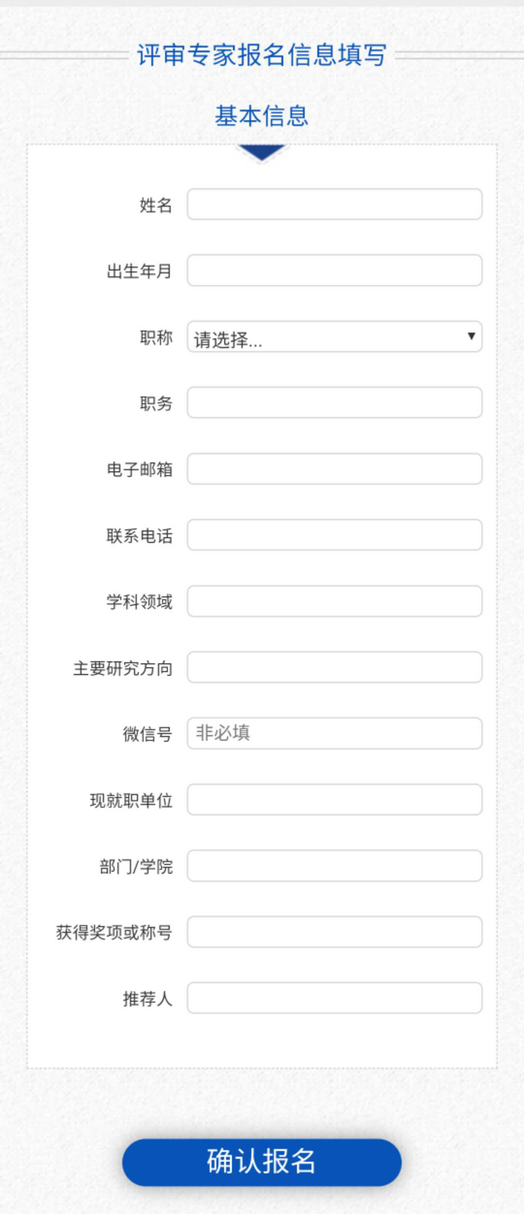 專家登錄網(wǎng)址:www.hr.edu.cn/zjk ,或掃描二維碼,填寫專家信息,點擊“確認報名”即可。