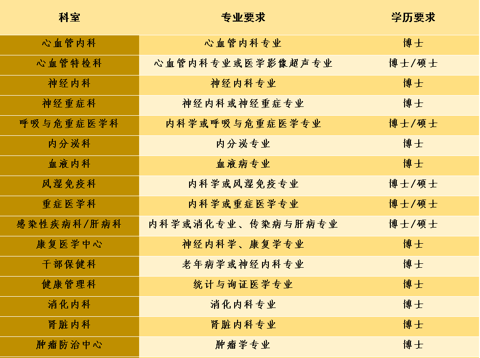 F類崗位(學(xué)科帶頭人/中青年骨干):具有豐富的臨床經(jīng)驗(yàn),能夠處理本學(xué)科、本專業(yè)的復(fù)雜疑難問題,具備博士學(xué)位或高級(jí)職稱,年齡一般不超過50周歲。
