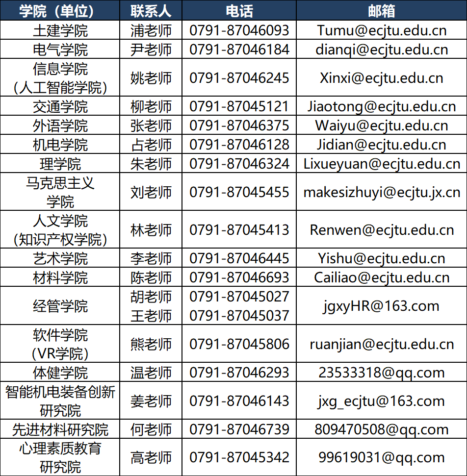 應(yīng)聘者請(qǐng)將個(gè)人相關(guān)材料通過(guò)郵件方式發(fā)送至學(xué)院聯(lián)系人郵箱并抄送至華東交通大學(xué)人才招聘郵箱,郵件主題樣式名稱為:姓名+XXX專業(yè)+應(yīng)聘XXX學(xué)院XXX崗位。