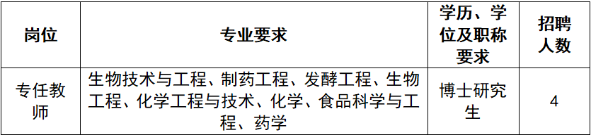 專業(yè)要求:生物技術與工程、制藥工程、發(fā)酵工程、生物工程、化學工程與技術、化學、食品科學與工程、藥學