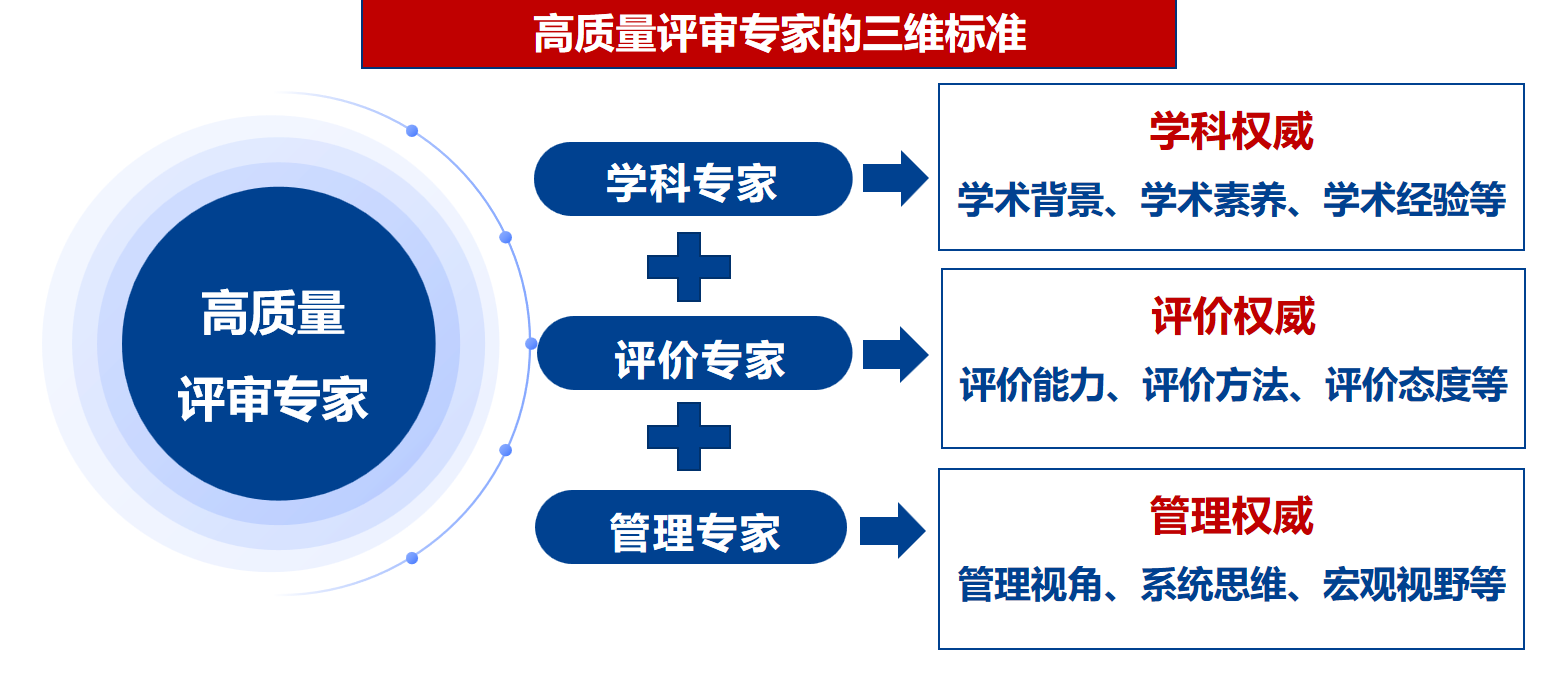 (四)“高質(zhì)量的評(píng)審專(zhuān)家”=“學(xué)科專(zhuān)家”+“評(píng)價(jià)專(zhuān)家”+“管理專(zhuān)家”