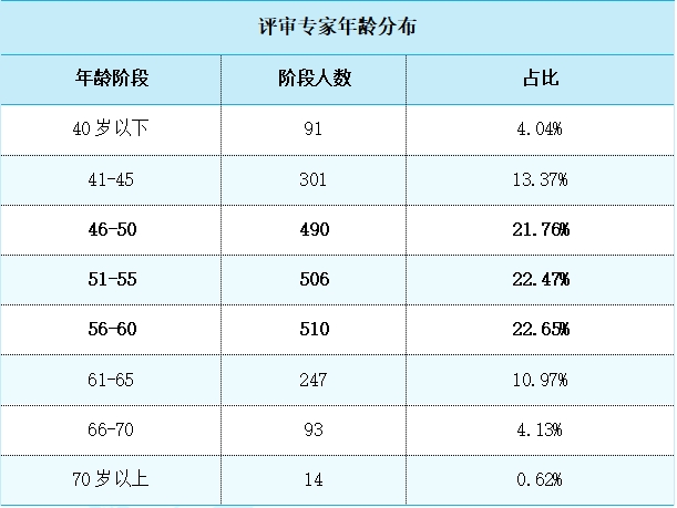 1.評(píng)審專(zhuān)家的年齡特征:以46-60歲為主要群體,占比超過(guò)66%