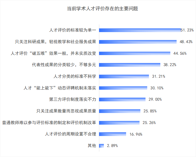 (二)“人才評(píng)價(jià)標(biāo)準(zhǔn)單一”“重科研、輕教學(xué)”仍是評(píng)價(jià)改革的主要問(wèn)題