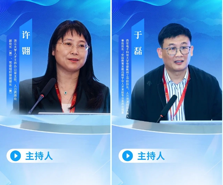 11月10日,教育強國戰(zhàn)略與人才發(fā)展分論壇一和分論壇二同時舉行,分別由浙江大學(xué)人才工作辦公室主任、人力資源處副處長(兼)、黨委組織部副部長(兼)許翾和西安電子科技大學(xué)黨委教師工作部部長、人力資源部部長兼人事處處長、人才發(fā)展專委會理事于磊主持。