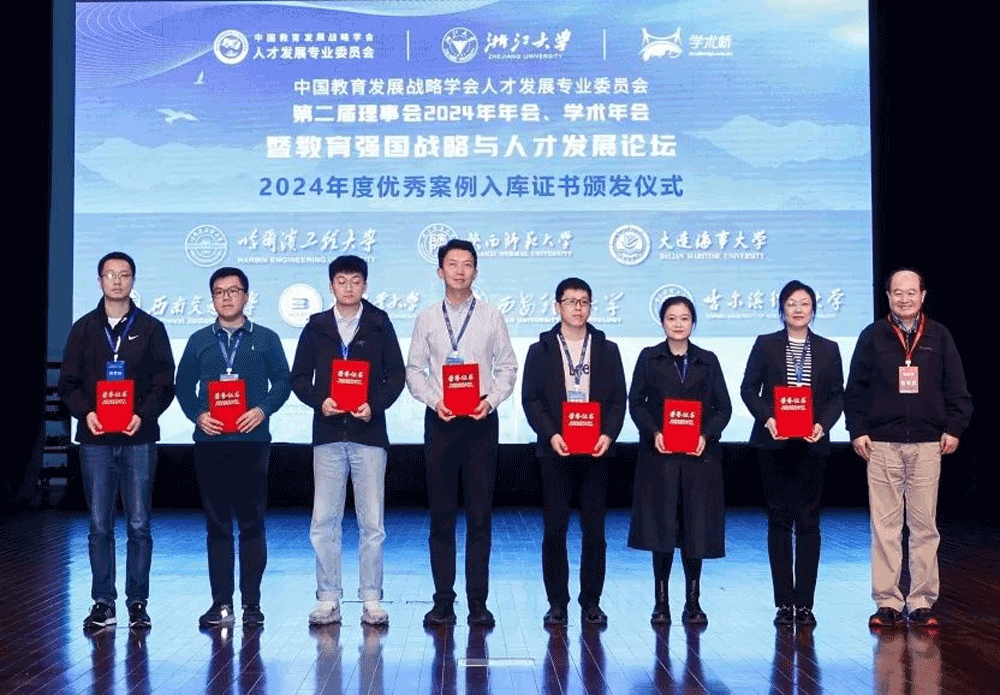 本次論壇還特別設(shè)置了2024年度優(yōu)秀案例入庫證書頒發(fā)儀式,石勇為高校代表頒發(fā)入庫證書。本次案例共征集16份,學(xué)術(shù)委員會從中優(yōu)選了7份案例入庫,這也是繼2023年首批18份案例進入中國教育發(fā)展戰(zhàn)略學(xué)會案例庫以來又一次重要評選。該舉動鼓勵他們在促進人才評價改革和高校建設(shè)等方面的研究和貢獻,同時也激勵更多會員高校參與到新時代高校人才發(fā)展與評價的改革與創(chuàng)新中,為推動人才發(fā)展貢獻力量。