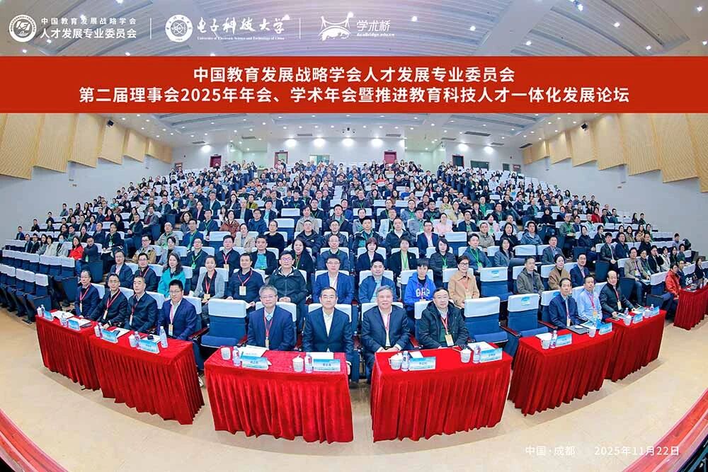 2025年11月22日初冬時節(jié),中國教育發(fā)展戰(zhàn)略學會人才發(fā)展專業(yè)委員會2025年學術(shù)年會暨推進教育科技人才一體化發(fā)展論壇在電子科技大學隆重開幕。銀杏流金,如詩如畫,來自全國近200所高校的500余名代表齊聚大學校園,共商人才大計,共繪發(fā)展藍圖。