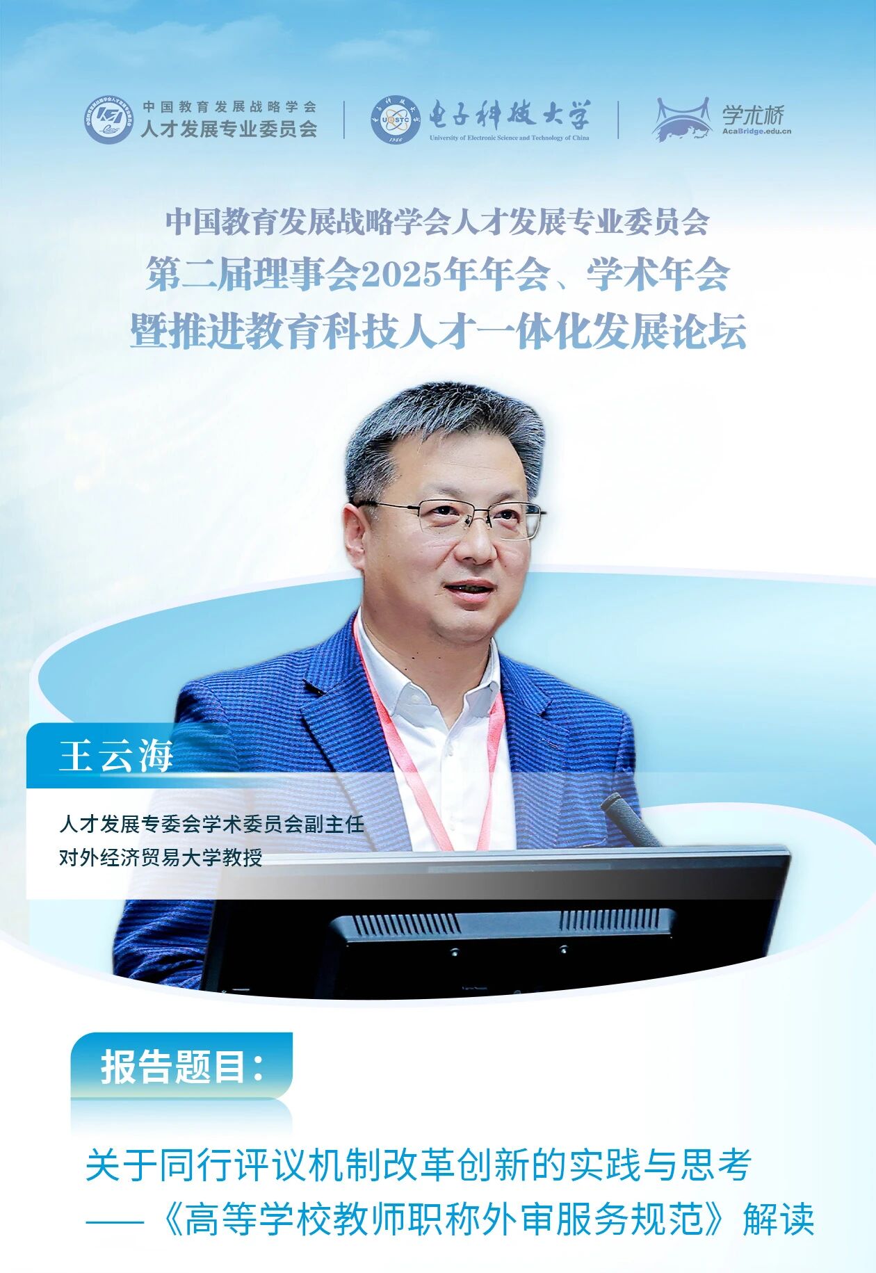 王云海分享了對同行評議機制改革創(chuàng)新的實踐探索與思考,重點對中國教育發(fā)展戰(zhàn)略學會新近發(fā)布的《高等學校教師職稱外審服務(wù)規(guī)范》團體標準進行了解讀。他說,該項標準是人才發(fā)展專委會落實教育部和中國教育發(fā)展戰(zhàn)略學會推進教育標準化工作的具體舉措,是聚焦同行評議機制和代表性成果評價制度改革創(chuàng)新的實踐探索。對高校教師職稱外審工作中的專家?guī)旖ㄔO(shè)、專家匹配和遴選、代表性成果分類、外審服務(wù)流程等工作進行規(guī)范,希望能為高校教師職稱外審工作提供規(guī)范化指引。標準的發(fā)布實施將有效提升人才評價質(zhì)量,對推動教育評價改革,構(gòu)建科學、公正的高校人才評價體系具有重要意義。