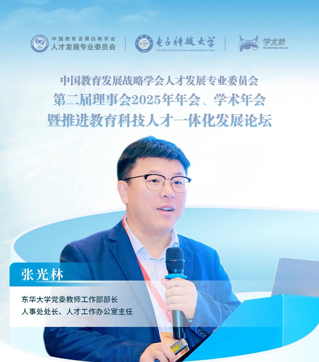 李志民向與會嘉賓表示感謝,肯定了電子科技大學與學術(shù)橋聯(lián)合組成的會務(wù)組的精心籌備。他回顧了專委會成立以來在課題研究、平臺搭建等方面的工作成效,強調(diào)專委會聚焦人才發(fā)展戰(zhàn)略與現(xiàn)實問題,通過組織學術(shù)交流、海外引才等活動,服務(wù)高校人事人才工作。面對新時代教育強國建設(shè)使命,他呼吁各高校人事工作者加強研究、深化交流,共同為推進高等教育強國建設(shè)貢獻智慧與力量。